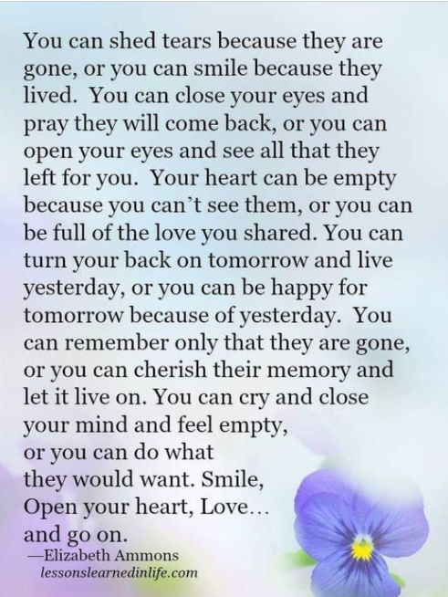 You can shed tears because they are gone, or you can smile because they lived.