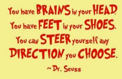 You have BRAINS in you HEAD. You have FEET in your SHOES. You can STEER yourself any DIRECTION you CHOOSE. - Dr. Seuss