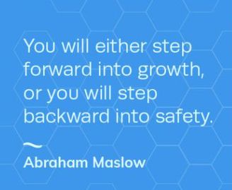 YOU will either step forward into growth, or you will step backward into safety. - Abraham Maslow