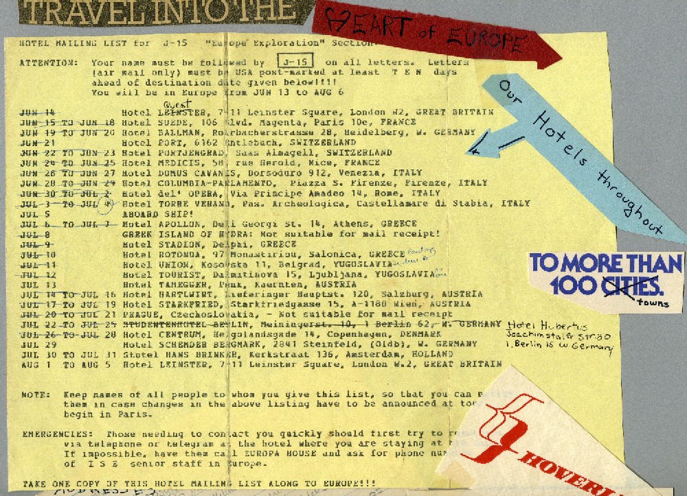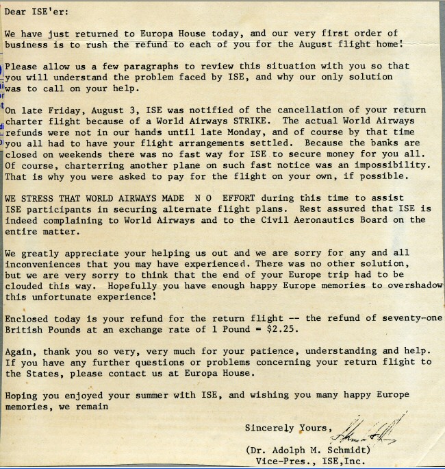 Note as of 2004: ISE is still business, but they now do customized group travel to Europe. Their headquarters is at the University of Illinois. 802 W. Oregon Street. Urbana, Illinois 61801. (217) 344-5863. Web site is www.clubeuropatravel.com.