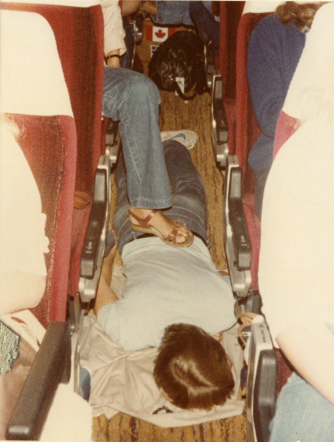 Come to find out the 2:15 flight hadn't left yet. They left in our spot and we were delayed, only 1 1/2 hours (we thought). We were searched through customs. Ready to depart- here it comes. DC-10 electric problems. Keep close tabs on our waiting hours. It was 14 total by 9:00- sitting in the airport.