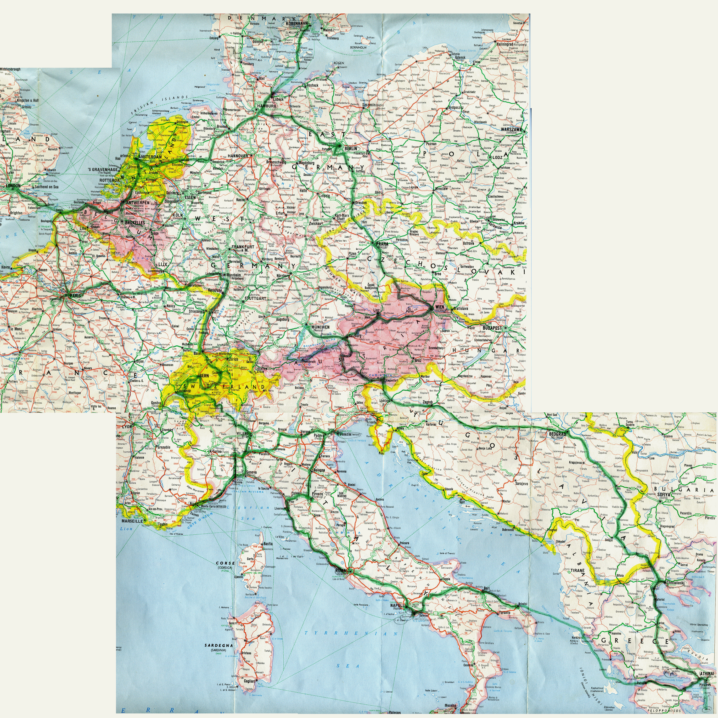 This is the journal that I kept during my bus trip around Europe. I saw 16 countries in 57 days. The cost was $1648 and it included transportation within Europe, all breakfast and dinners, hotel every night, and 66 special events. What a deal. I saw and did many things that you can't do anymore, like: