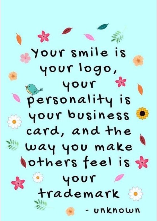 You smile is you logo, your personality is your business card, and the Way you make others feel is your trademark